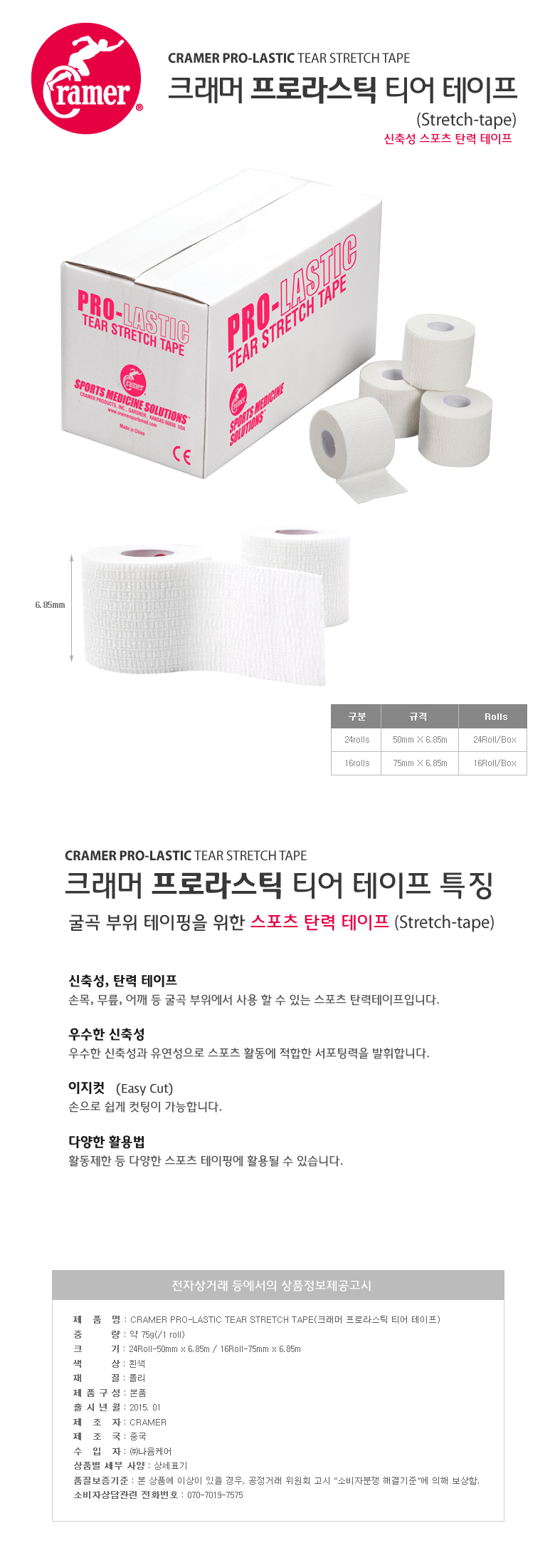 HOME > 의무용품 > 크래머 (CRAMER) > [CRAMER] 크래머 프로라스틱 티어 테이프 Tear Light 쭈글이 테이프