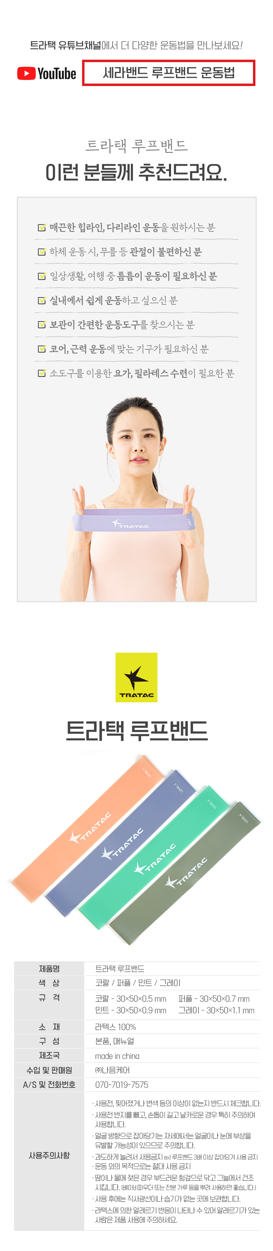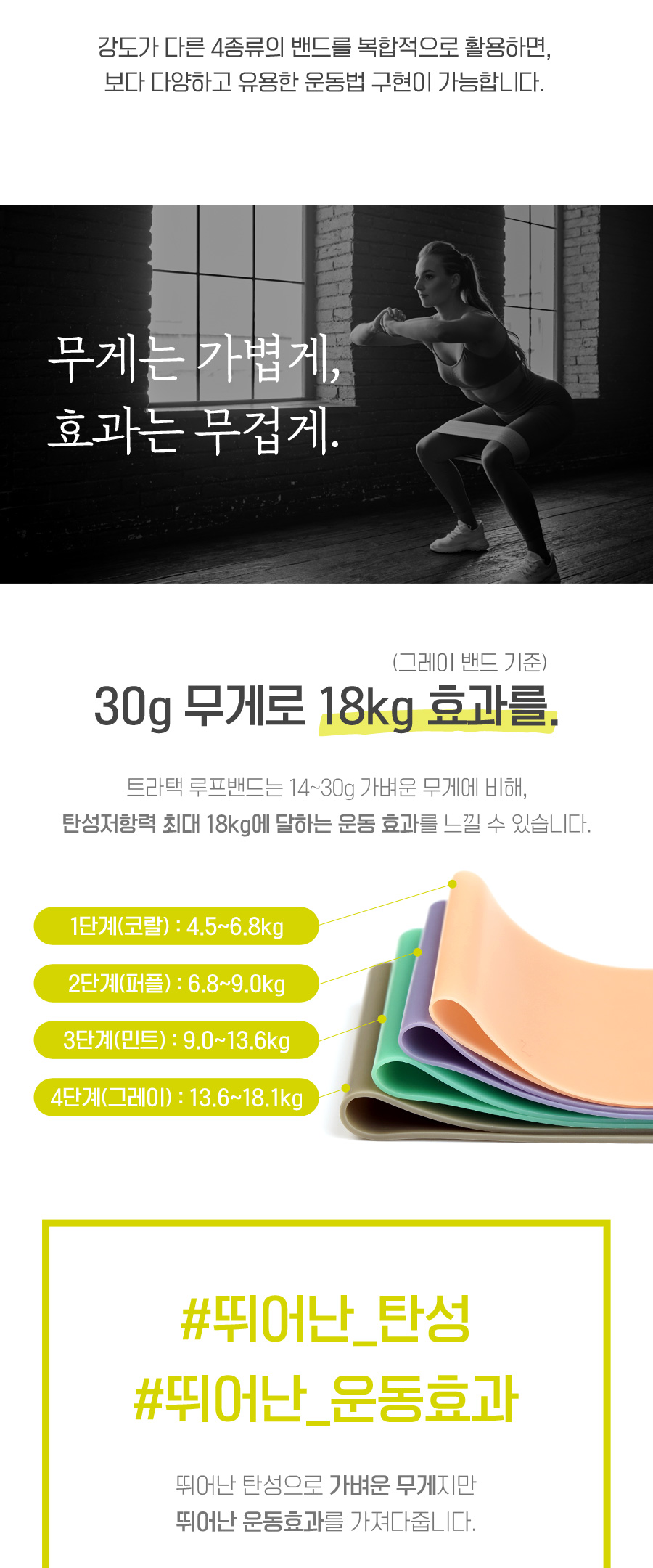 [트라택] 프리미엄 루프밴드 힙업 스쿼트 탄성저항 고무밴드