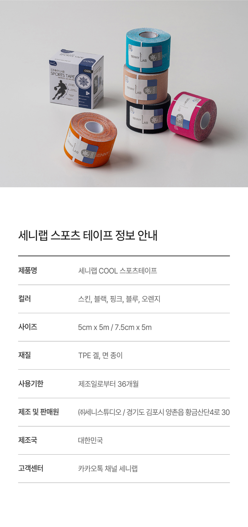 HOME > 의무용품 > 세니랩(SENNYLAB) > [SENNYLAB] 세니랩 쿨 스포츠테이프 5cm / 2인치 (1롤) 쿨링효과
