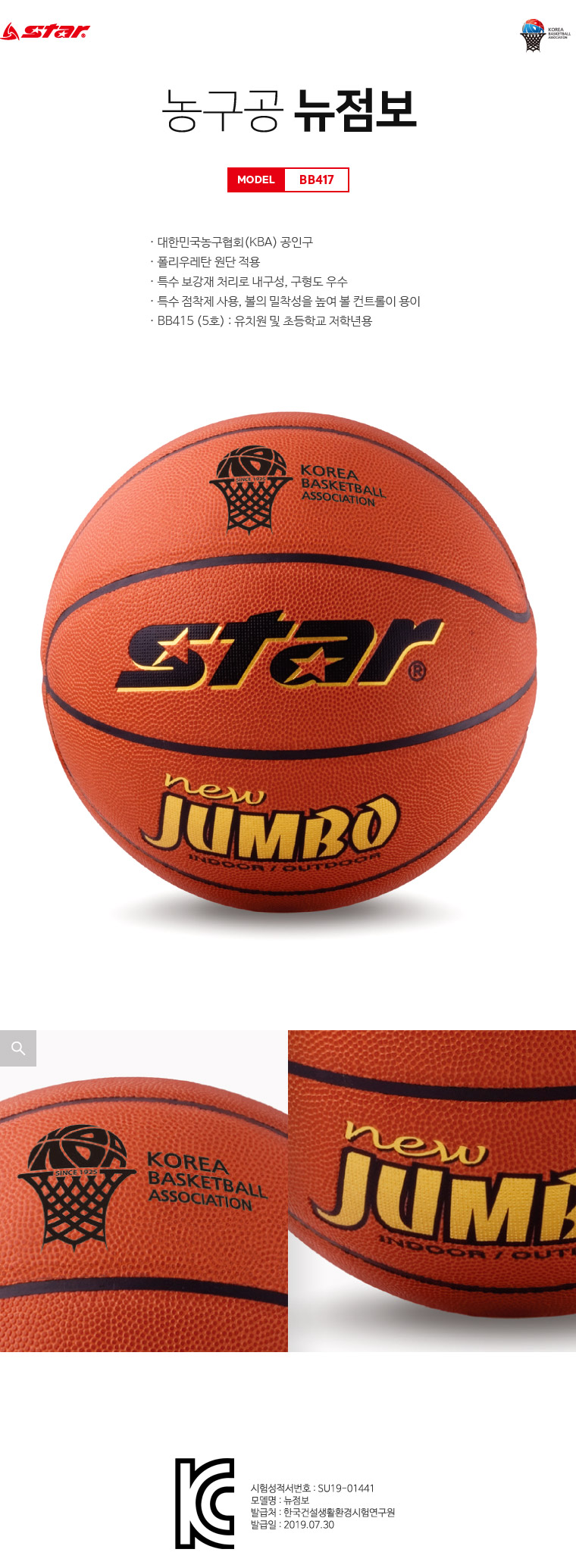 | 품명 및 모델명 | 스타 농구공 뉴점보 BB415 / BB417 |